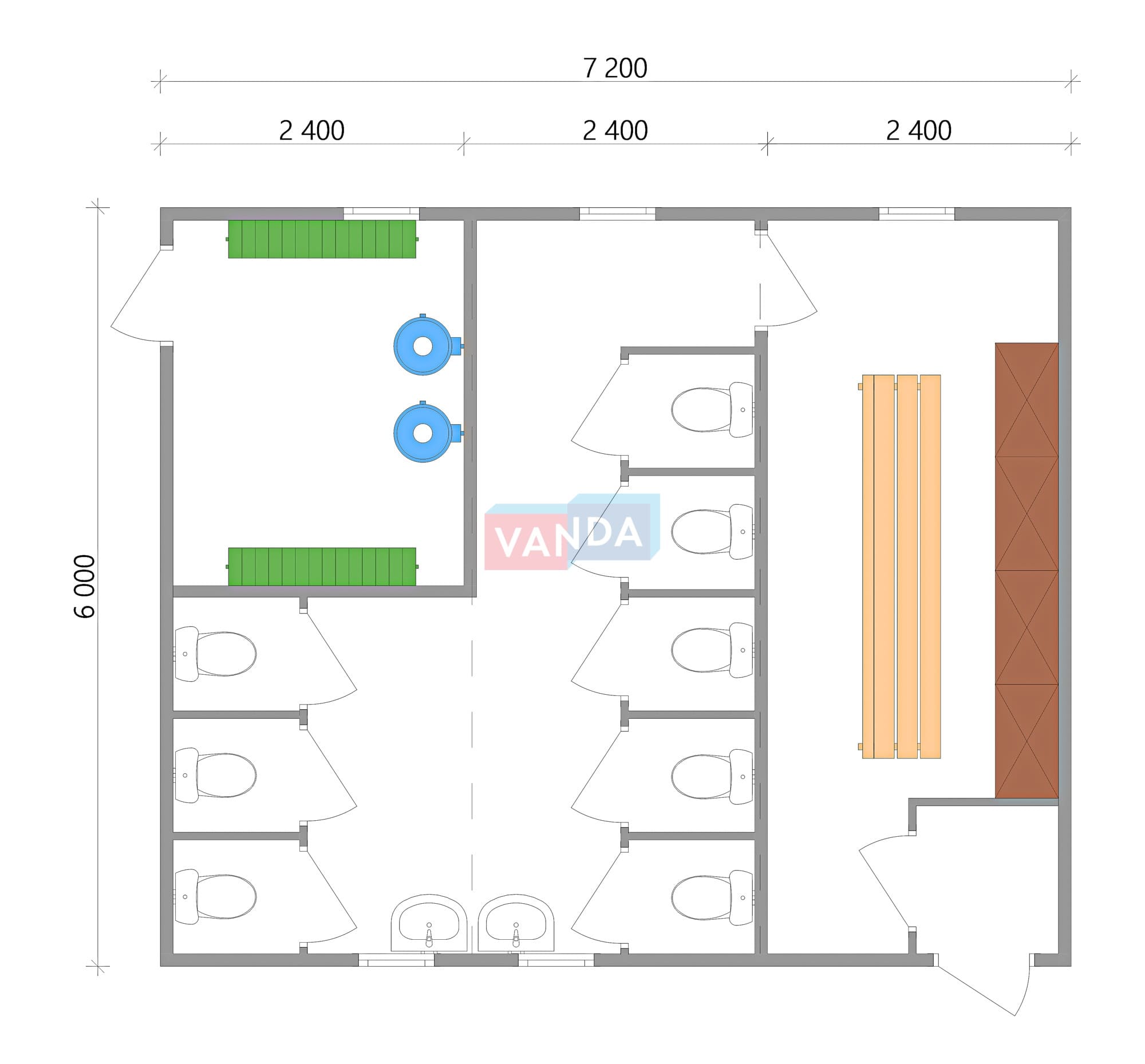 Модульная бытовка с плоской крышей 7.2x6.0 7.2x6.0 43.2 OSB 9 мм. Оцинкованный профлист 675 000 р. Уточняйте у менеджера