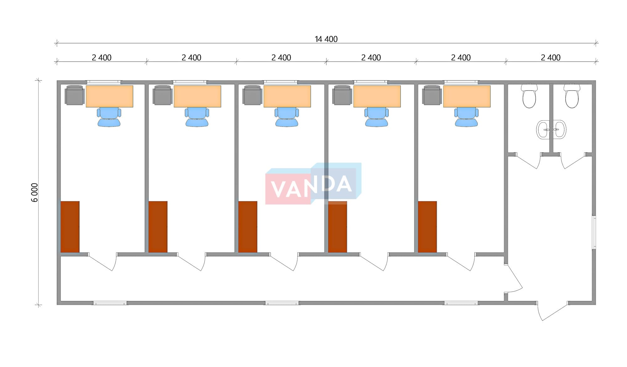 Модульная бытовка с плоской крышей 7.2x6.0 7.2x6.0 43.2 OSB 9 мм. Оцинкованный профлист 650 000 р. Уточняйте у менеджера